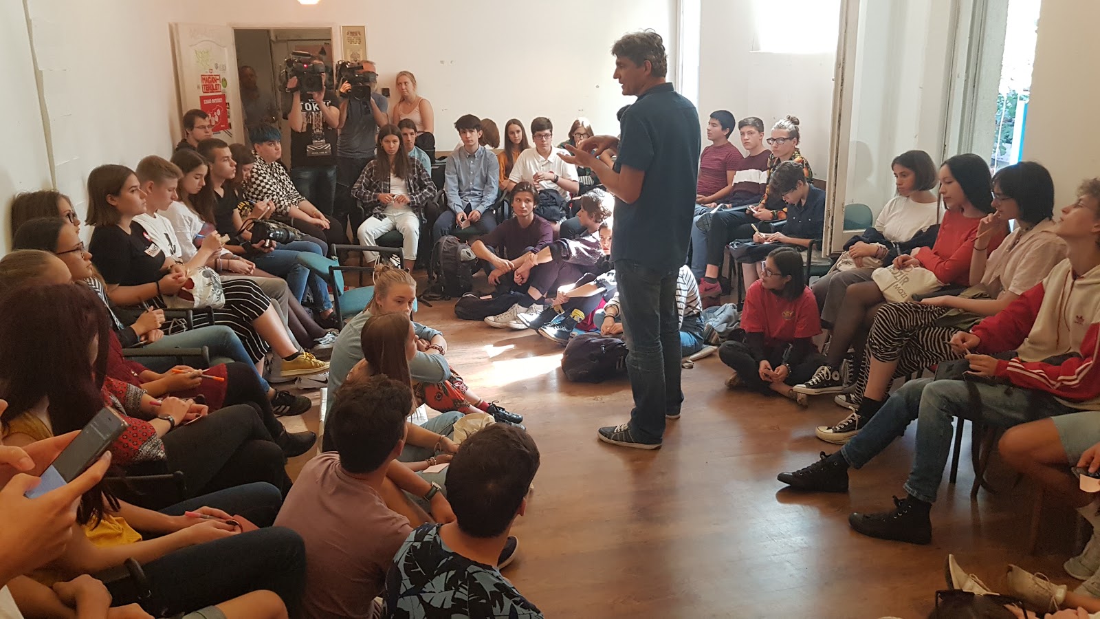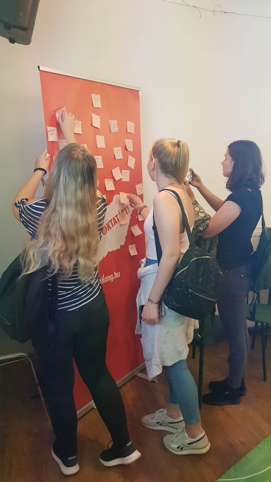 A napot Szűcs Tamás történelem tanár (a PDSZ elnöke) tájékoztatójával nyitottuk, amelyen diákokkal beszélgetett a köznevelési törvényről, majd közösen feltűztük Magyarország stilizált térképére, hogy milyen problémákat látnak a diákok az oktatási rendszerrel kapcsolatban. Ezzel párhuzamosan Horváth Csenge (Láthatatlan Tanoda) elindította a Mentortársast. Körösztös Gergő kortárs költő irodalomtörténeti előadását majd egy órán át hallgatták a diákok, a programot A suli teszi az embert? című oktatási egyenlőtlenségekről szóló beszélgetés követte Vujovits Julival, a Közélet Iskolája munkatársával. László János, a Nyomtass Te is! főszerkesztője arról tartott előadást, mit tehetünk a sajtószabadságért. A legkisebb lépést megtették közösen: a diákok a Nyomtass Te is! legújabb példányait hajtogatták össze a beszélgetés alatt, így segítve a terjesztést. A délután egyik fénypontja a VIII. kerületi 1956-os séta túra volt, melyet Eörsi László történész tartott.