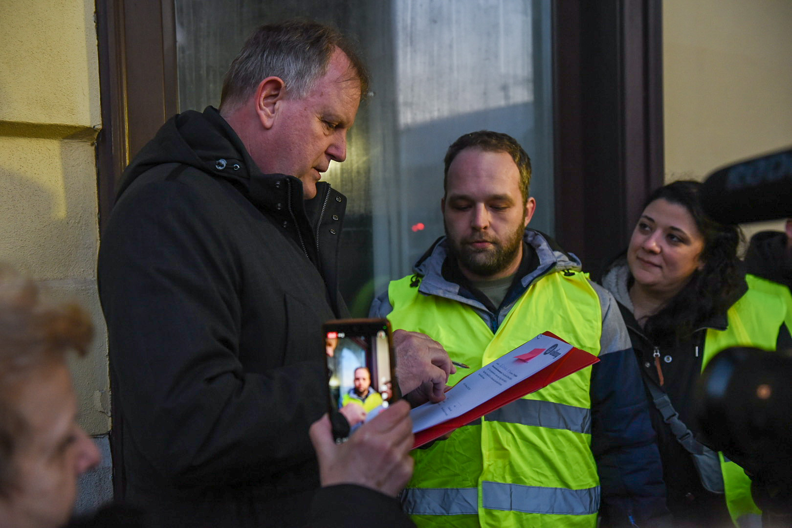 Február 9-én átadtuk a petíciónkat. Az átadásra azonban nem volt hajlandó eljönni a polgármester, helyette Szekeres Antalt, a város jegyzőjét küldte el átvenni az íveket. Völgyesi Márton, a Debreceniek az akkumulátorgyár ellen csapatának képviselője az átadásnál elmondta Szekeresnek, hogy szeretnénk, ha a polgármester összehívna egy egyeztetést minél hamarabb a helyi civilekkel az akkmulutárogyár ügyében, valamint azt is, hogy szeretnénk, ha a polgármester reagálna érdemben a több mint 12 ezer aláírásra és a petícióban foglaltakra.