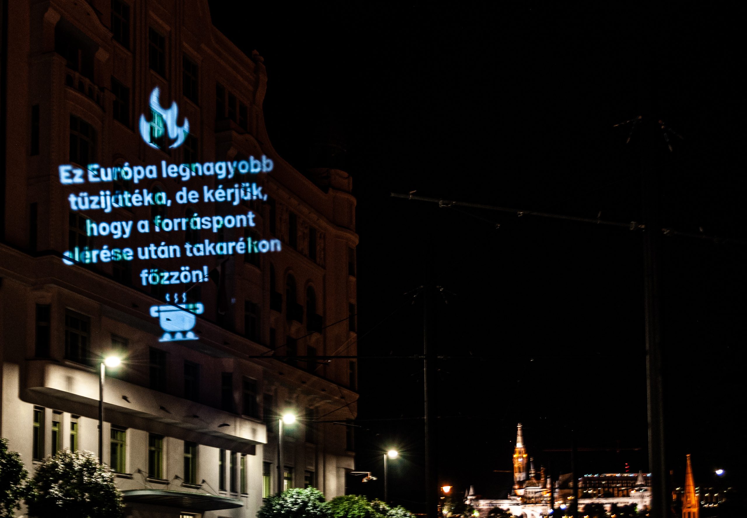 Az akciónk üzeneteivel világítottunk rá a kormány képmutatására: miközben több milliárdból megszervezik Európa legnagyobb tűzijátékát, a lakosságot spórolásra szólítják fel. A vetítésünkre elsöprően sok pozitív visszajelzést kaptunk a helyszínen. A legkedvesebb talán az volt, amikor egy járókelő azt mondta, hogy ez többet ér, mint az egész tűzijáték.