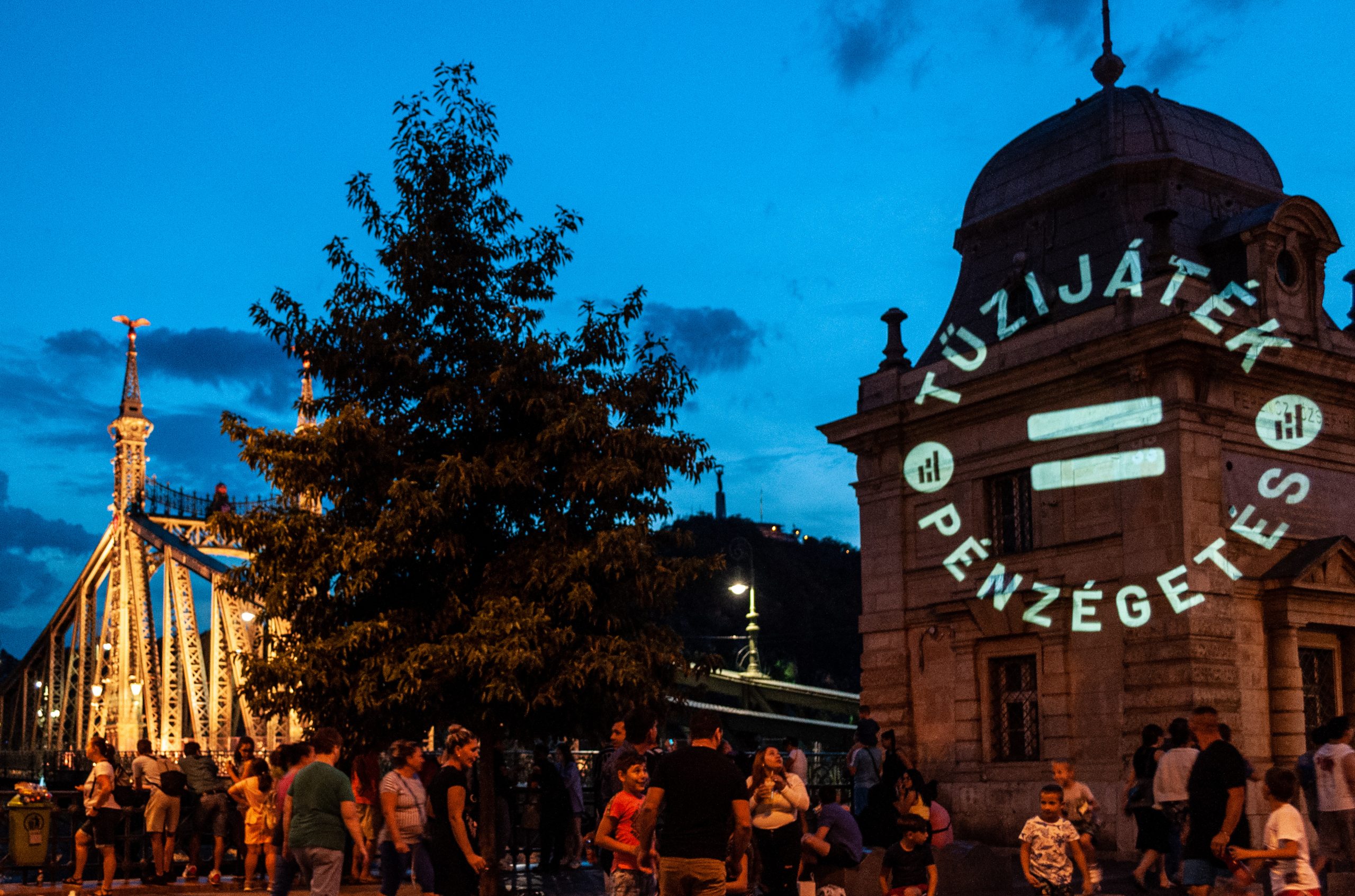 Végül augusztus 27-én a rakpartra mentünk, hogy megmutassuk és felhívjuk az emberek figyelmét arra, hogy a tűzijáték nem más, mint pénzégetés. Közösségi finanszírozásból vettünk két vetítőgépet, hogy a tűzijáték előtt és után fényjátékkal üzenjünk a döntéshozóknak. A Szabadság-hídnál és a Kossuth téren a Miniszterelnökség épületénél több ezren nézték a tűzijátékot, így ők mind találkoztak a mi üzenetünkkel is.
