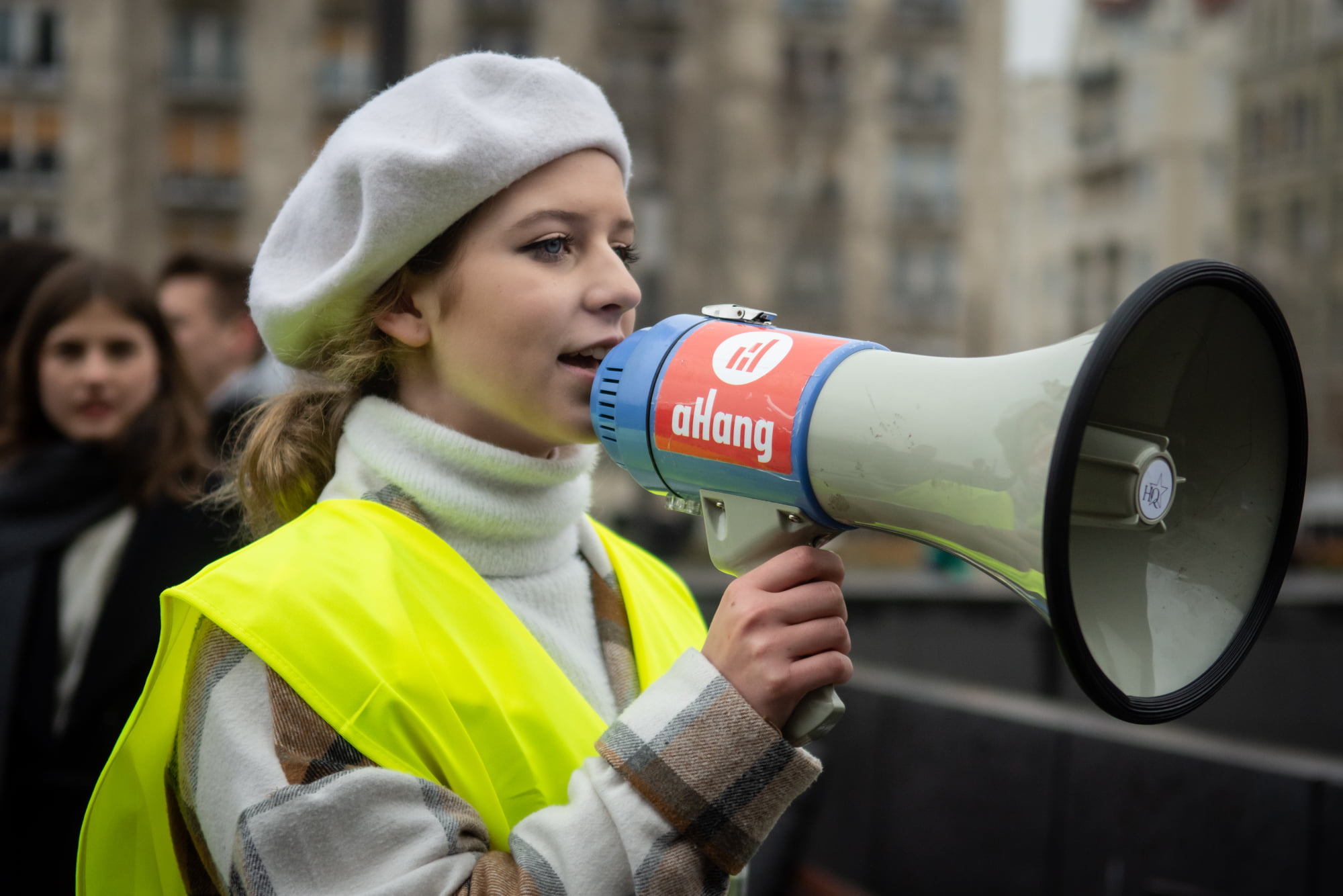 Március 16-án léptek határozatlan idejű sztrájkba, ugyanezen a napon pedig több ezer diákkal tüntettünk a Kossuth téren. Annát és Mátét, a tüntetés szervezőit az aHang csapat segítette – egyrészt az előkészületekben, másrészt pedig olyan, pénzt (és nem zsebpénzt…) igénylő dolgokban, mint a színpad, a hangosítás vagy épp egy molinó és láthatósági mellények beszerzése.